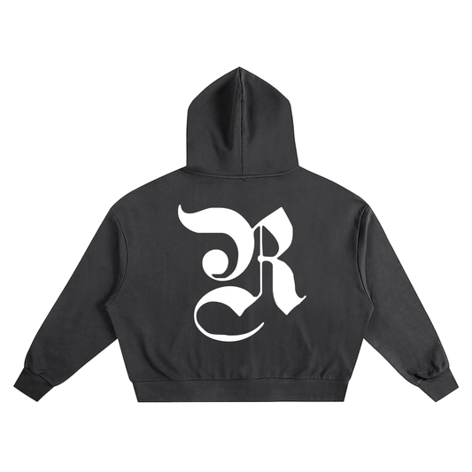 CONTRAST-STITCHED BOXY FLEECE HOODIE - FLOWER GRAY