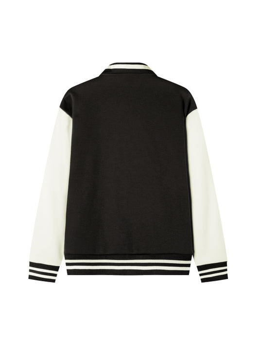 TWO-TONE FLEECED VARSITY JACKET - BLACK WITH WHITE